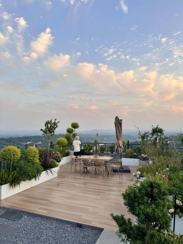 把露台好好改造一下,摆了一张桌子和几张椅子,周边种满喜欢的花花草草,闲暇的时候,坐在露台上喝茶、养花、看风景,简直太惬意了。
