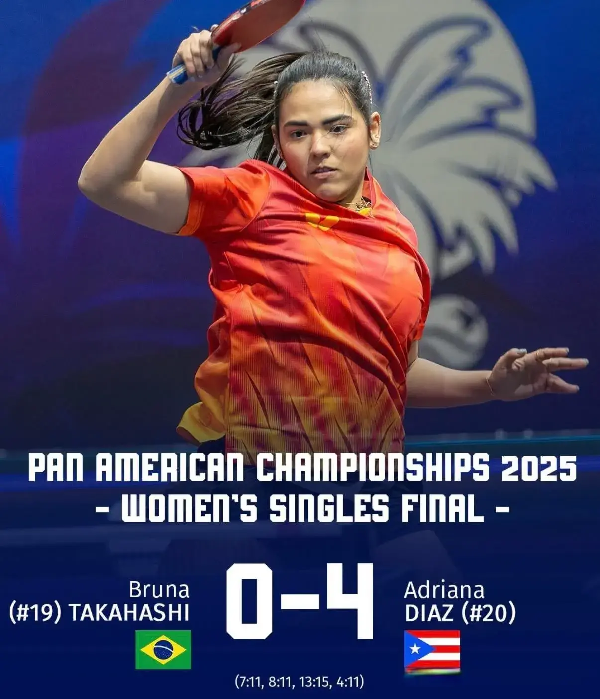 迪亚兹在上周结束的泛美洲乒乓球锦标赛收获女单冠军,加上清掉去年的女单冠军积分,保持不变,目前仍然积1365分排名第20位,